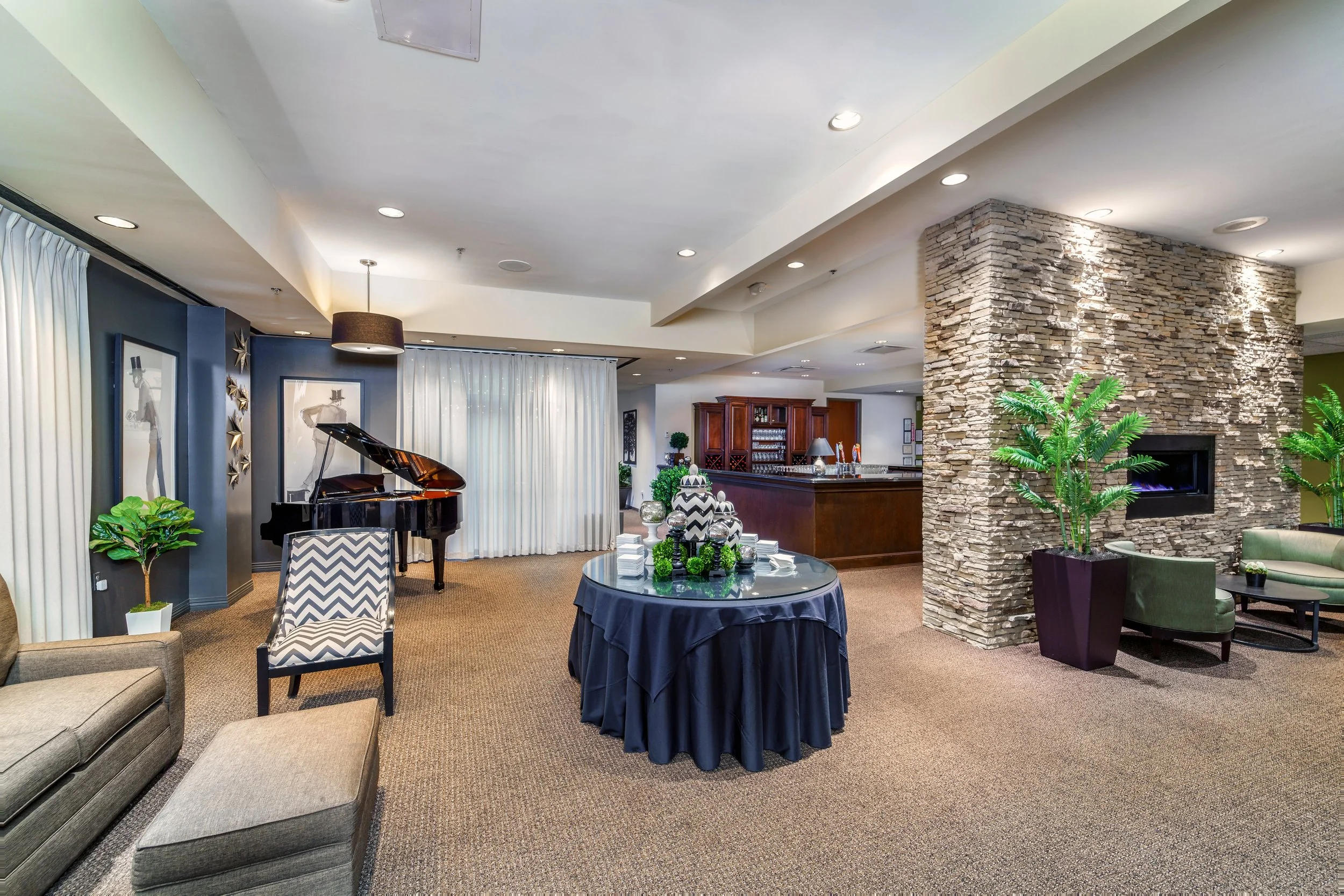 Features include a 7×12ft LED wall, multiple screens, premier sound, open space, multiple access and exit points, easy transition from the living, and easy transition to the restrooms.