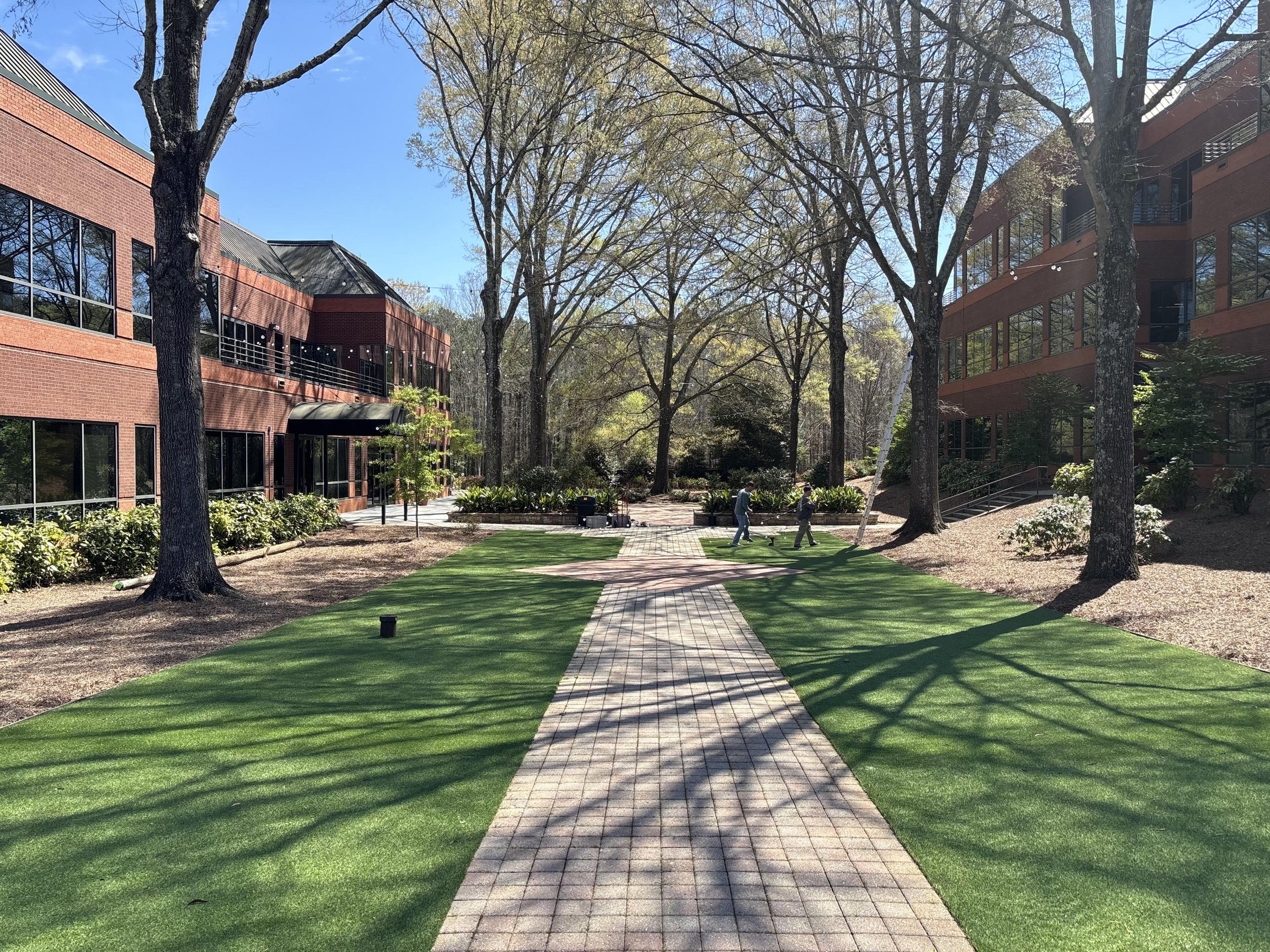 A cool features of the space is that it never gets hot. With trees overhead providing shade and the two building on both sides creating a wind tunnel, the outdoor courtyard will always be cool even in the heat of summer.